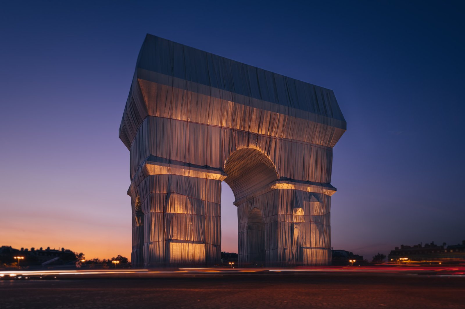 Installation artistique monumentale imaginée par Christo & Jeanne-Claude. L’Arc de Triomphe emballé. Paris, Septembre 2021.